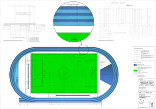 El campo de fútbol de césped artificial tendrá las dimensiones apropiadas y la preceptiva homologación para la disputa de encuentros de competición regional. En cuanto a la pista de atletismo que circundará el terreno de juego, tendrá capacidad para seis calles y serán de pavimento sintético prefabricado, que deberá contar con la verificación técnica de la Federación Española de Atletismo. El proyecto constructivo incluye una barandilla de protección en la salida al graderío que impedirá el acceso a la pista, así como diferentes dotaciones y equipamientos, como zonas de saltos, redes tras las porterías, fosos de salto o ría de obstáculos.