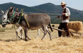 Los niños agalloneros, a lomos de nueve borriquillos, deshicieron una parva a la antigua usanza, siguiendo los consejos de sus abuelos.