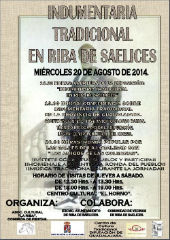 El próximo miércoles, 20 de agosto, se abrirá la exposición en el Centro Cultural El Horno “Indumentaria Tradicional en Riba de Saelices”, que está organizada por la Asociación Cultural “La Riba” y Comisión de Fiestas con la colaboración del Ayuntamiento de la localidad, de la Comunidad de Vecinos y de la Diputación de Guadalajara a través del Centro de Cultura Tradicional. SIGUE