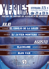 El programa municipal 'Viernes a la luna' se despide esta temporada con una jornada nocturna que estará amenizada por el grupo Blus Van. Como en las tres sesiones anteriores, la piscina de verano de Azuqueca, en el complejo San Miguel, abrirá sus puertas desde las 9 de la noche a la 1 de la madrugada. Las entradas costarán dos euros. SIGUE