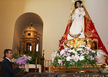 La iglesia de El Fuerte de San Francisco ha albergado uno de los actos más tradicionales de las Ferias y Fiestas de la ciudad, la ofrenda floral a la Virgen de la Antigua.