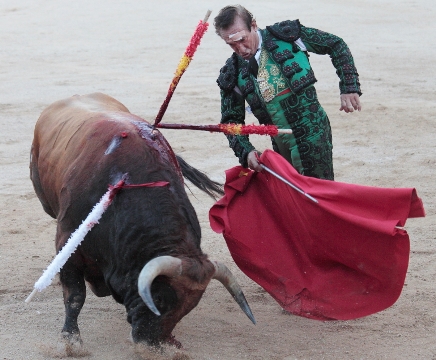 | Tres pares al quiebro, el último al violín, bastaron a El Pana para que se diera una jaleada vuelta al ruedo (Foto: www.eduardobonillaruiz.com) |