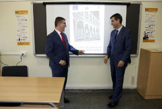 Acompañado del alcalde de la capital guadalajareña, Antonio Román, de la presidenta de la Diputación Provincial, Ana Guarinos, y del delegado de la Junta de Comunidades en la provincia, José Luis Condado, el consejero ha inaugurado la ampliación de la EOI con el nuevo centro ubicado en el edificio Río Tajo, que contará, a partir de este curso, con tres aulas dotadas de instalación multimedia y con capacidad para 35 alumnos en cada una de ellas.