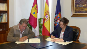 La presidenta de la Institución Provincial, Ana Guarinos, y el alcalde de Atienza, Pedro Loranca, han firmado un convenio de colaboración que regula el funcionamiento del centro, propiedad de la Diputación, abierto desde este mes de abril
