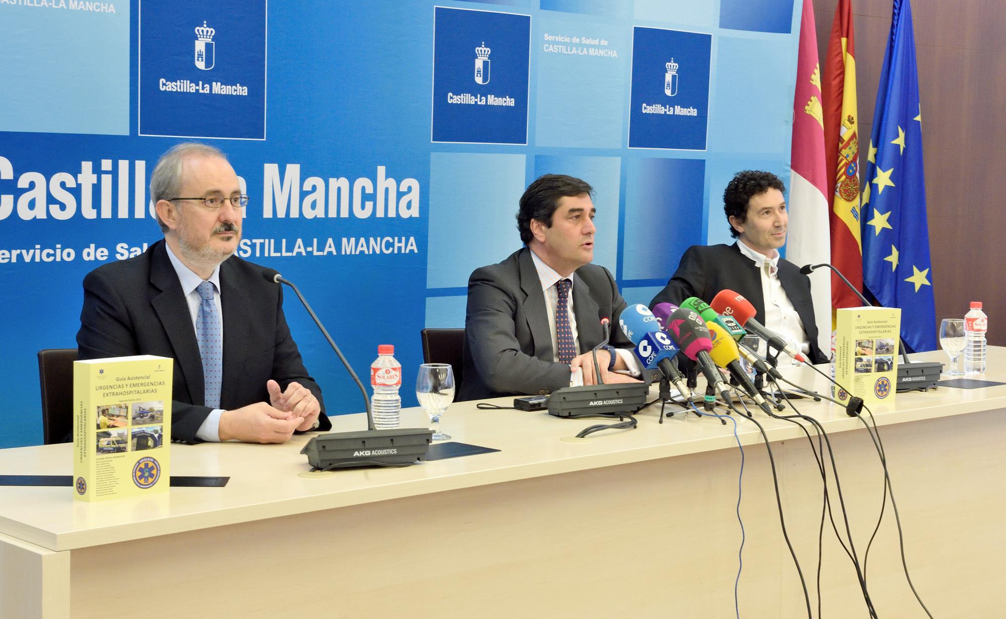 El consejero de Sanidad y Asuntos Sociales del Ejecutivo regional, José Ignacio Echániz, ha asegurado hoy que “Castilla-La Mancha se encuentra al nivel de los mejores Servicios de Emergencias del mundo en la atención urgente y prehospitalaria”, durante la presentación de la segunda edición de la Guía Asistencial ‘Urgencias y Emergencias Extrahospitalarias’, en la que ha estado acompañado por el director médico de la Gerencia de Urgencias, Emergencias y Transporte Sanitario, Raúl Canabal, y por uno de los coordinadores y autores de este trabajo, Manuel Sánchez. SIGUE