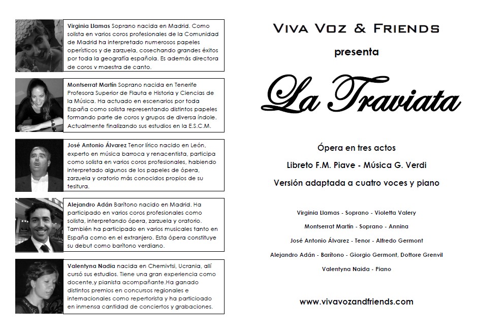 Este domingo a las 19,00 horas tendrá lugar la representación de la Ópera “La Traviata” en su reducción para solistas y piano, en la Casa de Cultura de Alovera. Esta reducción prescinde de las partes corales al tiempo que trasforma los sonidos orquestales en un espectacular arreglo para piano. Los tres actos que componen la ópera tienen una duración aproximada de hora y media.