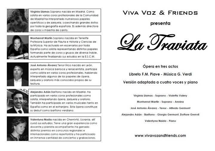 La representación estará a cargo de la compañía “Viva Voz and friends”, vinculados a la Escuela de Música, pues varios de sus miembros han formado parte de la misma a lo largo de estos últimos años.