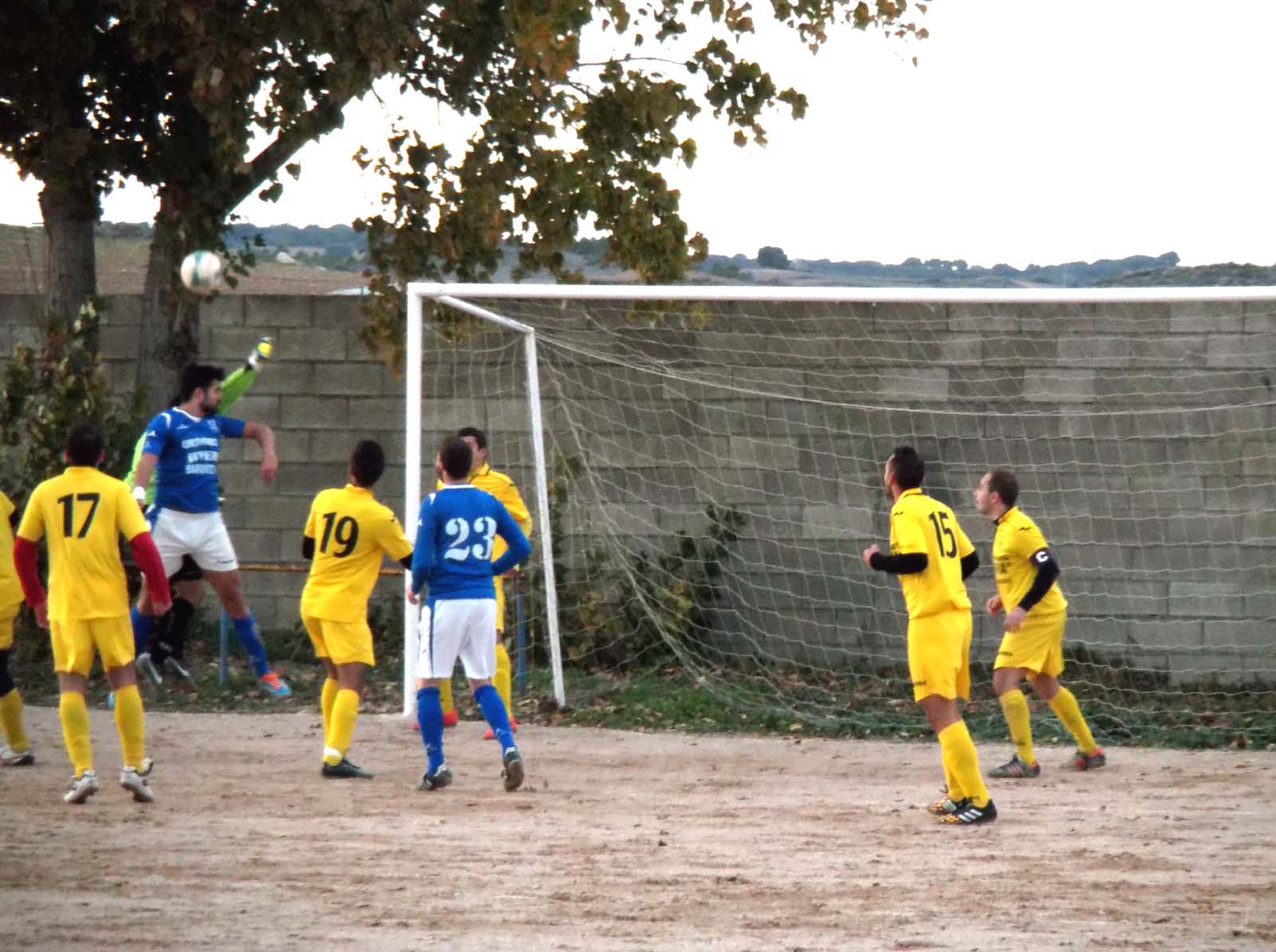 El encuentro comenzó con gran dominio de los Koki que querían y tenían la pelota y eso que el viento reinante dificultaba bastante a la hora de matizar los pases. Los yebranos se encerraron en su área buscando alguna contra que les permitiera dar la sorpresa a un conjunto azulón que sabía muy bien lo que había venido a buscar en este partido: los tres puntos. El mejor juego de los yunqueranos propiciaron ocasiones como para haberse adelantado en el marcador en la primera mitad pero una vez el poste y otras la falta de acierto lo impidieron y ambos conjuntos se retiraban a los vestuarios con un empate a cero que por lo visto se antojaba injusto para los de Koki.