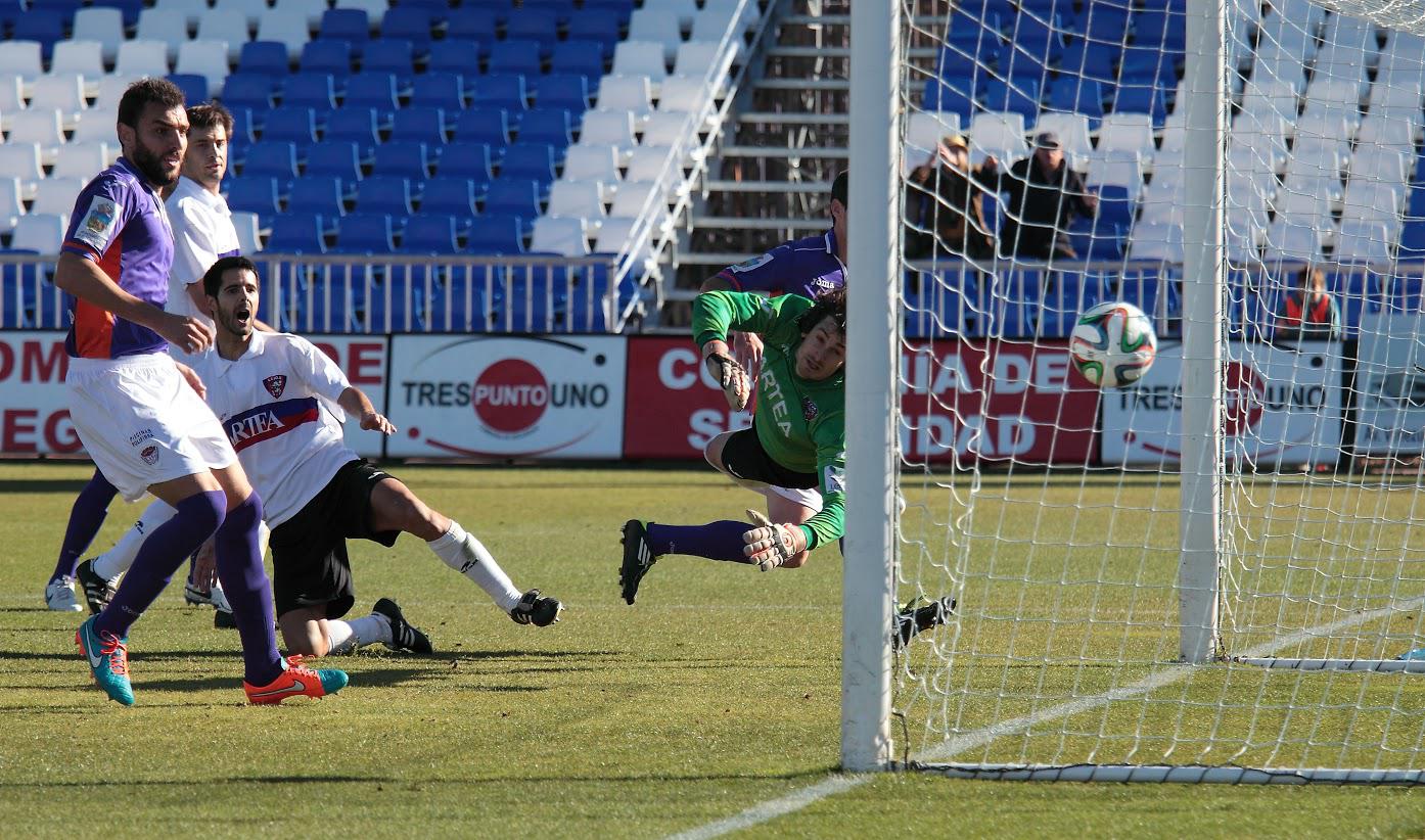A partir del minuto 15 empezó a carburar el Dépor y llegaban las ocasiones mas claras. La primera de ellas en las botas de Molinero, que dentro del área cruzó demasiado su disparo y se fue lamiendo el palo. Precisamente el extremo ponía el empate en el marcador en el minuto 20 con un excelente golpeo de falta directa, que se coló por la escuadra de Iturrioz. A partir de aquí, los alcarreños gozaron de un sinfín de ocasiones, primero Toledo a punto estuvo de marcar, pero salvó el portero visitante un disparo al primer palo.