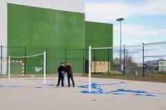 Esta nueva instalación se ubica junto a los frontones y el acceso se realiza a través de la entrada al complejo desde la rotonda José Luis Viejo. La pista tiene unas dimensiones totales de 22,40 por 33,40 metros, con capacidad para albergar una pista de balonmano (12 por 27 metros) o dos zonas de juego para la práctica del voleibol (8 por 16 metros cada una). "Para la superficie, se ha optado por arena fina, lavada y especialmente tratada para que no desprenda polvo y se ha establecido un grosor de 40 centímetros para un juego cómodo y seguro", explica el edil azudense, quien recuerda que la inversión municipal ha rondado los 53.000 euros.