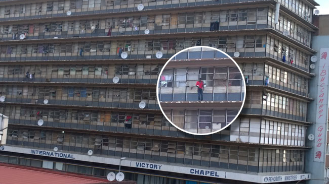 Sucedió la noche del jueves en las esquinas entre las calles Bree y Simmonds, en el centro de Johannesburgo. Los testigos que citan los medios locales informan de que el hombre salió a la ventana por el quinto piso y comenzó a recitar versículos de la Biblia.