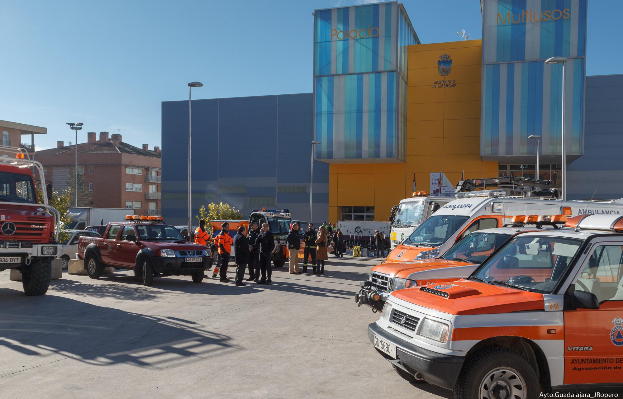 En las inmediaciones del Palacio Multiusos de Guadalajara ha tenido lugar esta mañana la presentación del dispositivo de medios técnicos y humanos con los que cuenta el Ayuntamiento de Guadalajara para hacer frente a nevadas y heladas propias de este tiempo.
