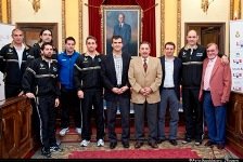 El Alcalde de Guadalajara, Antonio Román, ha recibido hoy en el Ayuntamiento al presidente de la Real Federación Española de Balonmano, Juan de Dios Román, al entrenador de la selección española, Valero Rivera, a varios jugadores de la misma (Hombrados, Juanín García y Garabaya) y a un representante de la selección Argentina. Durante estos días ambas selecciones se encuentran en Guadalajara de cara al partido que disputarán el sábado, 4 de junio, a las 20,30 horas en el David Santamaría. La selección española regresará a Guadalajara unos días después para disputar el partido clasificatorio para el campeonato europeo contra Rumanía. En esta ocasión, se celebrará en el Palacio Multiusos de Guadalajara a las 18 horas el próximo domingo, 12 de junio.