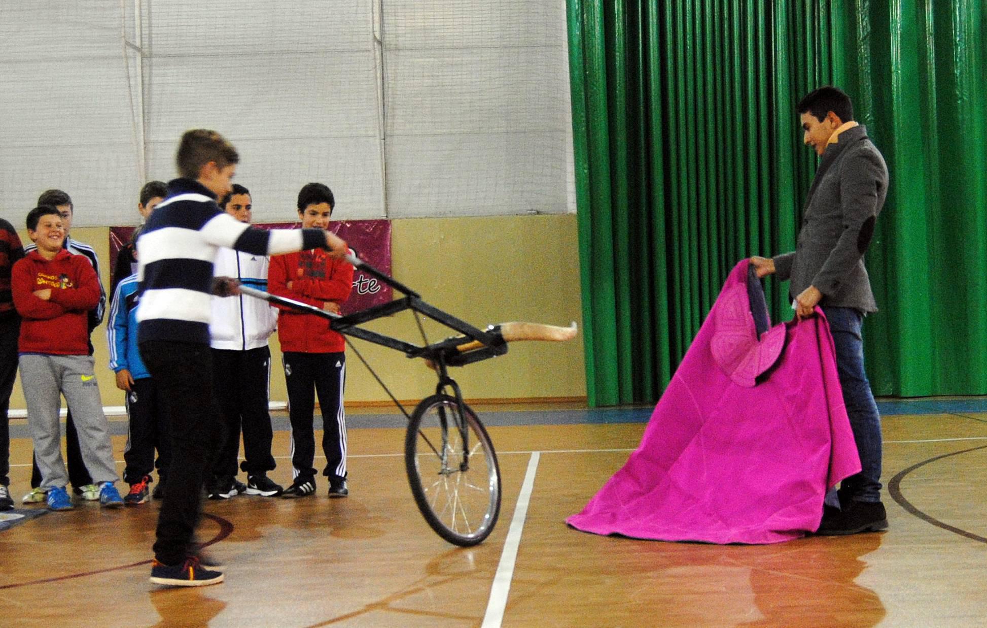 Con capote y muleta en mano, Hernández propició una magistral y amena clase de toreo de salón, donde los más pequeños participativos en todo momento, también tuvieron la oportunidad de coger los utensilios propios del novillero.