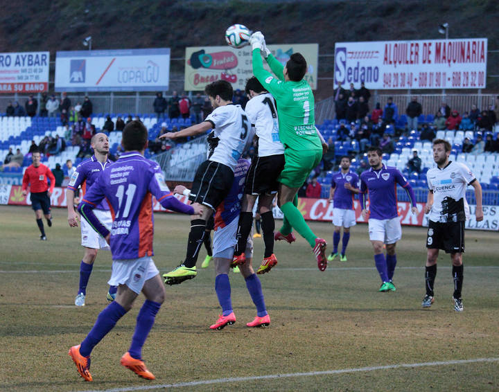 Las primeras llegadas del encuentro vinieron por el bando morado con las internadas de Manzano por la banda izquierda que no tuvieron rematador. Con el paso de los minutos empezó a aparecer la banda derecha con Kevin Lacruz y Javi López que combinaban e intentaba suministrar balones al área Conquense pero que sacaba la defensa de Cuenca con facilidad.
