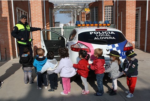 La Jefatura de la Policía Local de Alovera ha recibido en la mañana del día 20 de enero la agradable visita de los alumnos de Educación Infantil del Colegio Virgen de la Paz. Unos sesenta niñosde entre cuatro y cinco añitos han recorrido las Dependencias de la Policía Local y han disfrutado subiéndose a los vehículos patrulla y haciendo sonar las “sirenas”. Además han podido disfrutar de su primera clase de Educación Vial en la que han aprendido por donde cruzar la calle y que siempre deben ir bien sujetos en el vehículo de los papás.