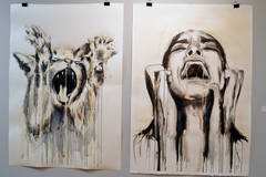 La muestra recoge obras de la pintora Marta Pache realizadas con tinta y lejía