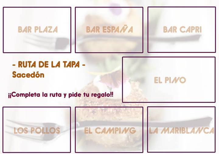 Piruleta de solomillo de cerdo, queso rebozado con mermelada de tomate, cerdito preñado, tosta de bacalao inglés, crepes de setas shitake en salsa americana, timbal de boquerones o caramelo de carrillada estofada, son algunas de las sugerentes delicias que podrán disfrutarse respectivamente en el bar Plaza, el bar España, el bar Capri, El Pino, Los Pollos, El Camping o La Mariblanca.