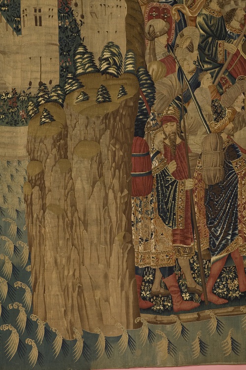 La primera, datada entre 1472 y 1475, constituye uno de los ejemplos más espectaculares en el arte del tapiz del siglo XV, tanto por su tamaño (miden aproximadamente 4 metros de alto por 11 metros de largo cada uno) como por su excepcional calidad técnica.
