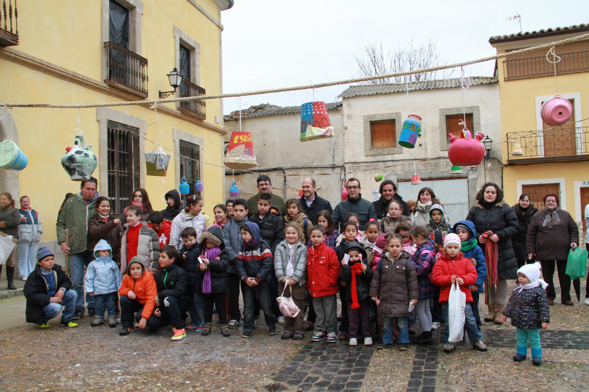 Los niños del CRA de Santa Lucía han decorado en las últimas semanas viejas vasijas y pucheros que en la mañana de hoy han roto, rellenos de sorpresas, en la Plaza Mayor durante la tracional celebración de Jovelardero