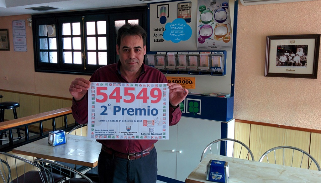 En el sorteo nº14 extraordinario de San Valentín celebrado hoy sábado 14 de febrero de 2015, uno de los agraciados con el segundo premio, ha sido vendido por terminal en el Punto de Venta mixto 38085 de la localidad de Humanes