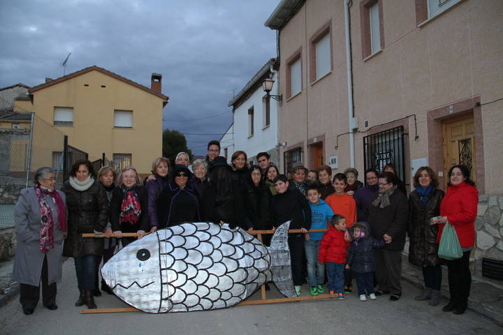 Los parejanos sacaron en procesión a la sardina sobre unas parihuelas, siguiendo el recorrido tradicional, antes de quemarla y merendar después en la Plaza Mayor
