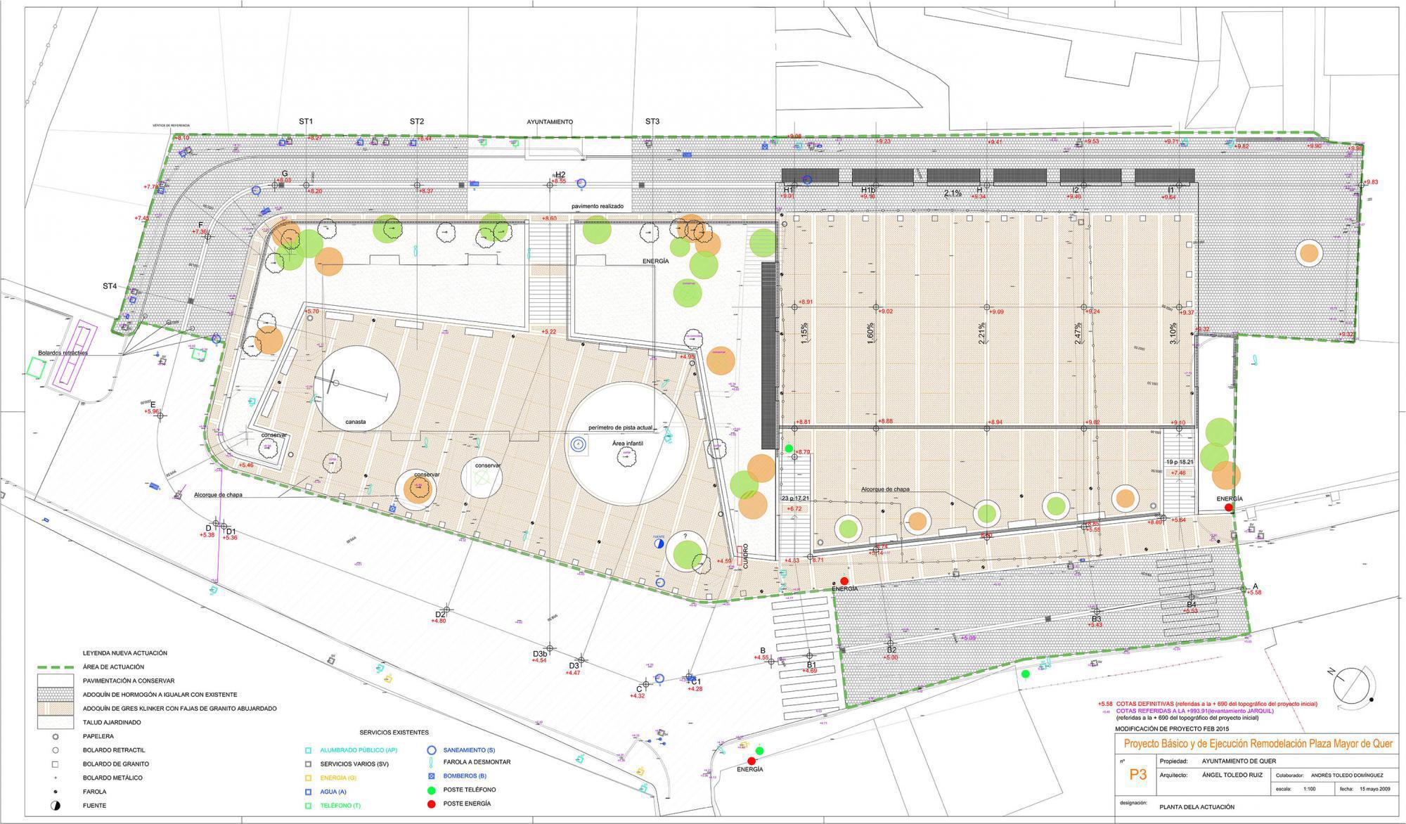 Desde el año 2008, fecha del proyecto, hasta la fecha, ha habido cambios en la localidad de Quer, que también han afectado al proyecto, principalmente la supresión del aparcamiento subterráneo que recogía, y la inclusión de un espacio multifunción “que el gobierno municipal entrante podrá dedicar a lo que estime oportuno, puesto que tiene la capacidad de ser un centro social o de reuniones”, valora Calvo. No es la única modificación del proyecto original, puesto que además se va a conservar la fuente pública, que no se contemplaba inicialmente,y la canasta de baloncesto, además de añadirse una valla de seguridad en el muro entre las dos alturas.