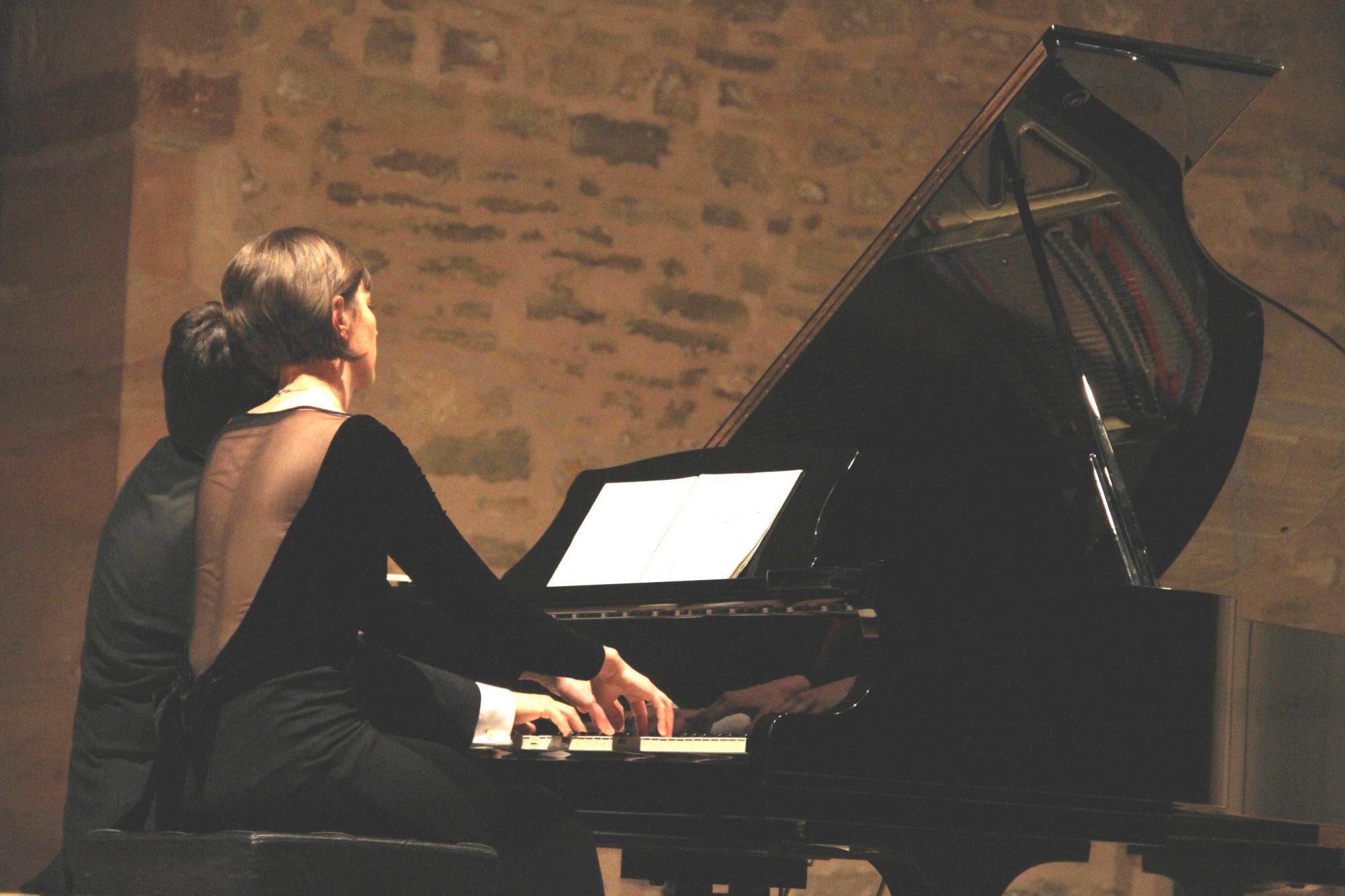 Los pianistas Bernadetta Raatz y Brenno Ambrosini interpretaron en la tarde de ayer en el Auditorio de El Pósito de Sigüenza un concierto a cuatro manos en el que incluyeron obras escritas originalmente para ser tocadas a cuatro manos.