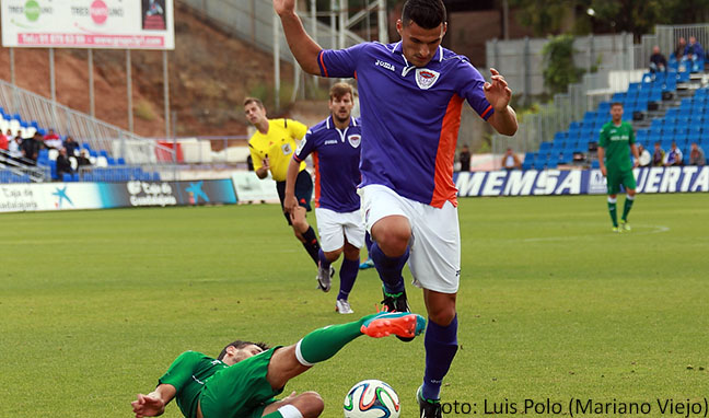 La superioridad morada en ese periodo fue tácita y los jugadores de Carlos Pérez Salvachúa rondaron el gol en al menos media docena de oportunidades. Así, Abel Molinero disparó flojo tras un buen control en el minuto veintitrés y, un minuto después, Toledo mandó demasiado alto su centro-chut. La enumeración de ocasiones deportivistas prosiguió en el minuto veintisiete con una falta frontal alta de Javi López, si bien las mejores oportunidades moradas llegaron en el tramo final del periodo inicial. Primero, con un cabezazo de Javi López que se marchó inexplicablemente fuera tras un centro de Dani Gómez. Y, acto seguido, con un tiro a la media vuelta del propio extremo malagueño desde el área pequeña que se marchó rozando el palo.