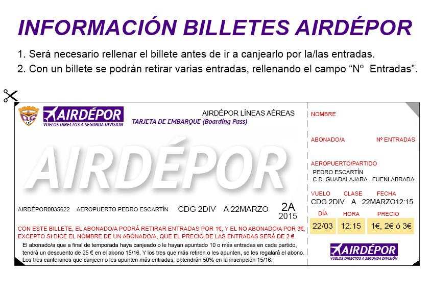 • #VuelaConAirDépor es una promoción exclusiva para los aficionados del Club Deportivo Guadalajara, por lo que será necesario presentar el DNI en las oficinas del C.D. Guadalajara al retirar las entradas.