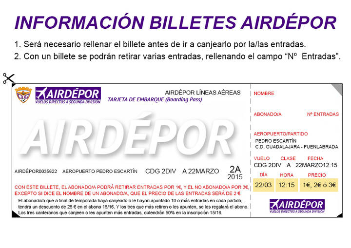 - #VuelaConAirDépor es una promoción exclusiva para los aficionados del Club Deportivo Guadalajara, por lo que será necesario presentar el DNI en las oficinas del C.D. Guadalajara al retirar las entradas.