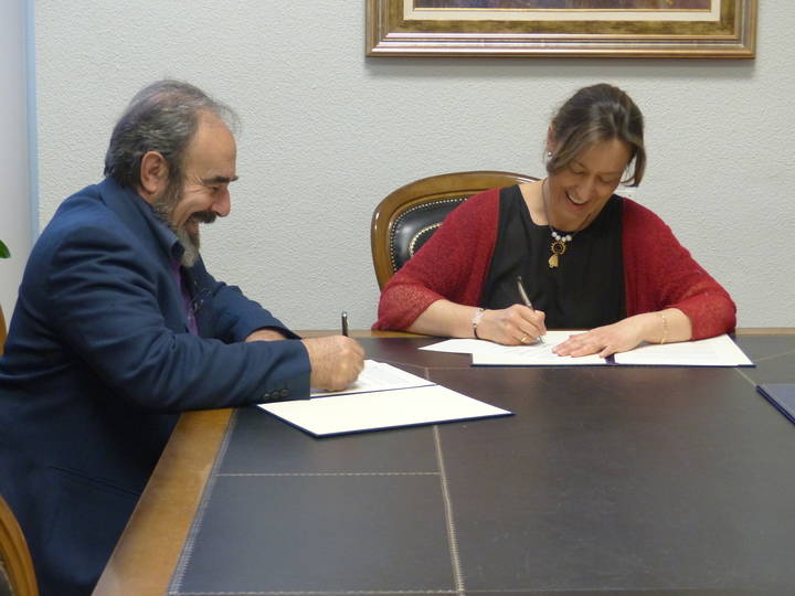 La presidenta de la Institución Provincial ha firmado los convenios de colaboración para promover las actividades del Geoparque y del museo molinés