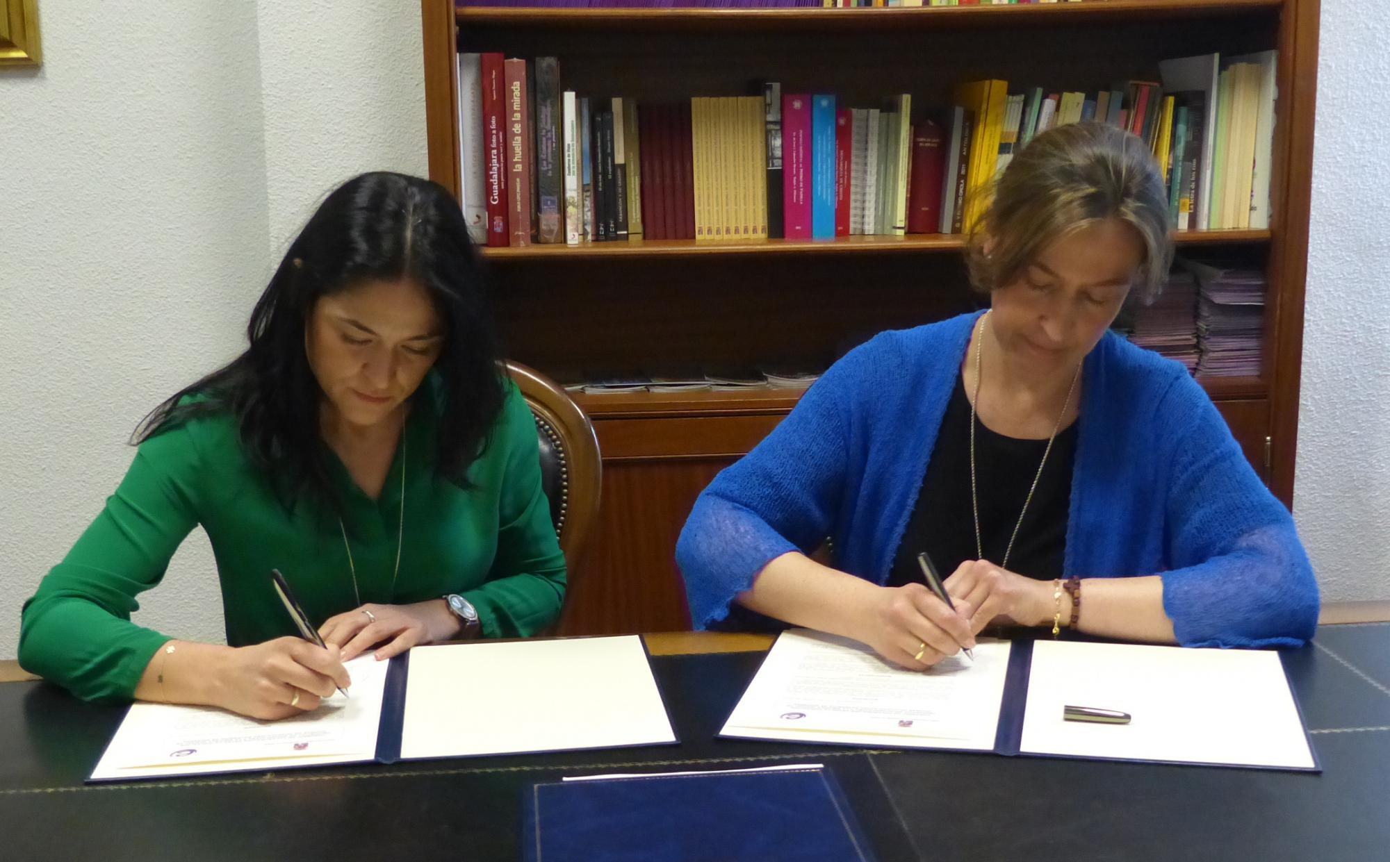 La presidenta de la Institución Provincial, Ana Guarinos, ha firmado un convenio de colaboración con la secretaria de la EOI Extensión de Sigüenza