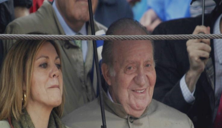 En la barrera, acompañado de Cospedal en una tarde que amenazaba lluvia. Así es como Don Juan Carlos era recibido en la corrida de toros celebrada en Brihuega.