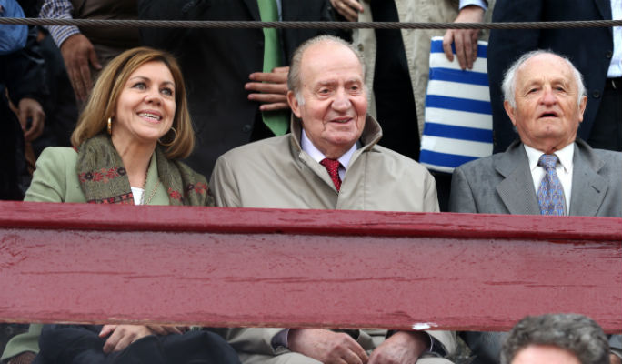 El rey Juan Carlos con la presidenta Cospedal en los toros en Brihuega