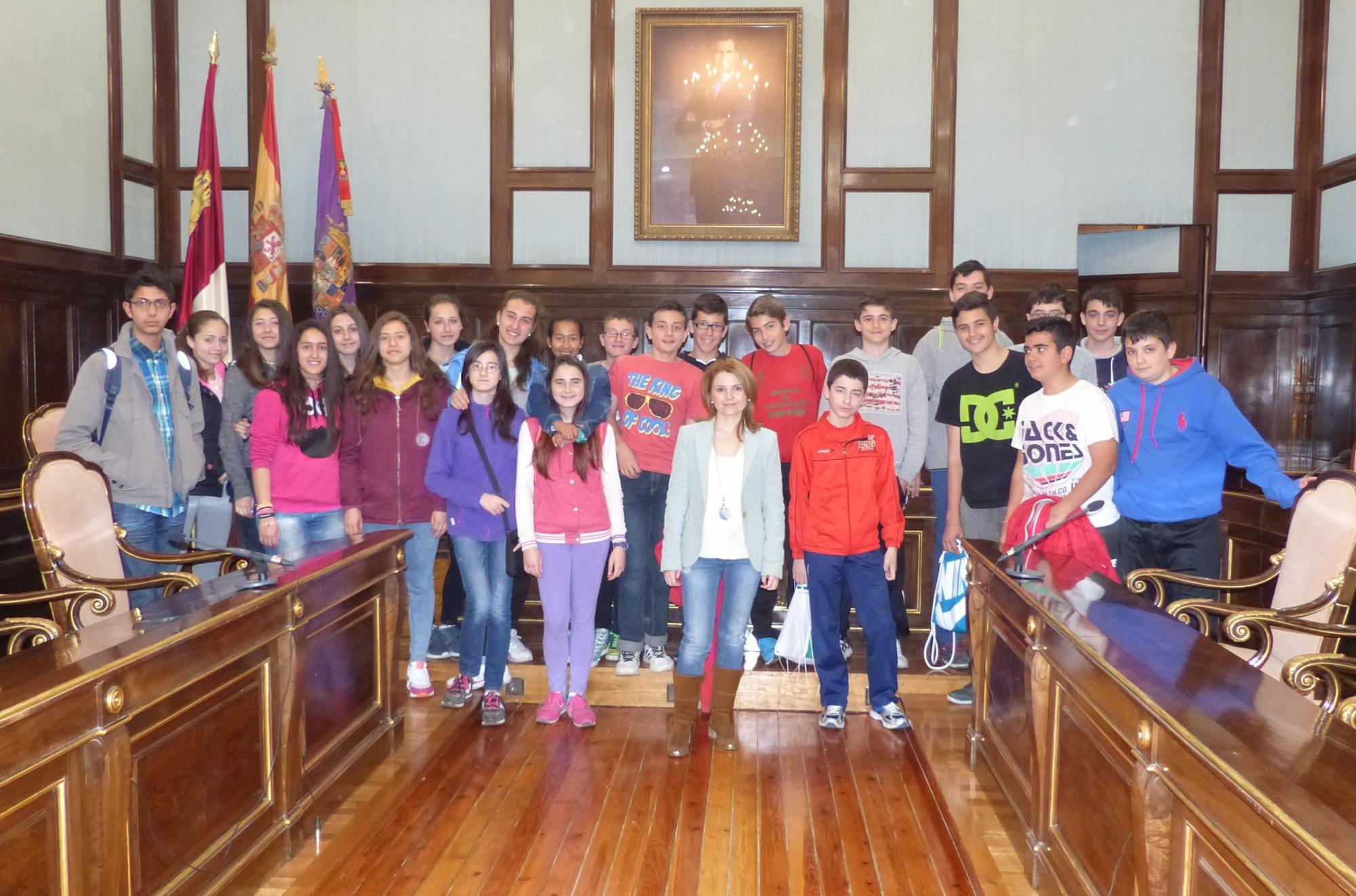Los alumnos han realizado una visita guiada por las instancias del Palacio Provincial que ha finalizado en el Salón de Plenos donde han celebrado “pleno” con la diputada de Cultura y Educación
