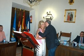 El lunes pasado se celebró un pleno extraordinario en el Ayuntamiento de Sigüenza. Contó con la asistencia de todos los concejales. Inicialmente Sonsoles Arcones juró su cargo al no haber podido estar presente por causas de fuerza mayor el día en que tuvo lugar el Pleno de Investidura. Después del juramento, el alcalde de Sigüenza, José Manuel Latre, le colocó la medalla de la Corporación Municipal. La sala, que estaba llena de público, acogió con un fuerte aplauso el nombramiento.