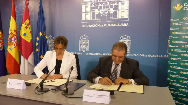 La presidenta de la Diputación Provincial de Guadalajara, Ana Guarinos, y el presidente de Caja Rural Castilla-La Mancha, Andrés Gómez Mora, han firmado hoy un convenio de colaboración para incentivar la creación y mejora de microempresas en nuestra provincia, es decir, aquellas que ocupan a menos de diez personas y cuyo volumen de negocios anual no supere los dos millones de euros.
