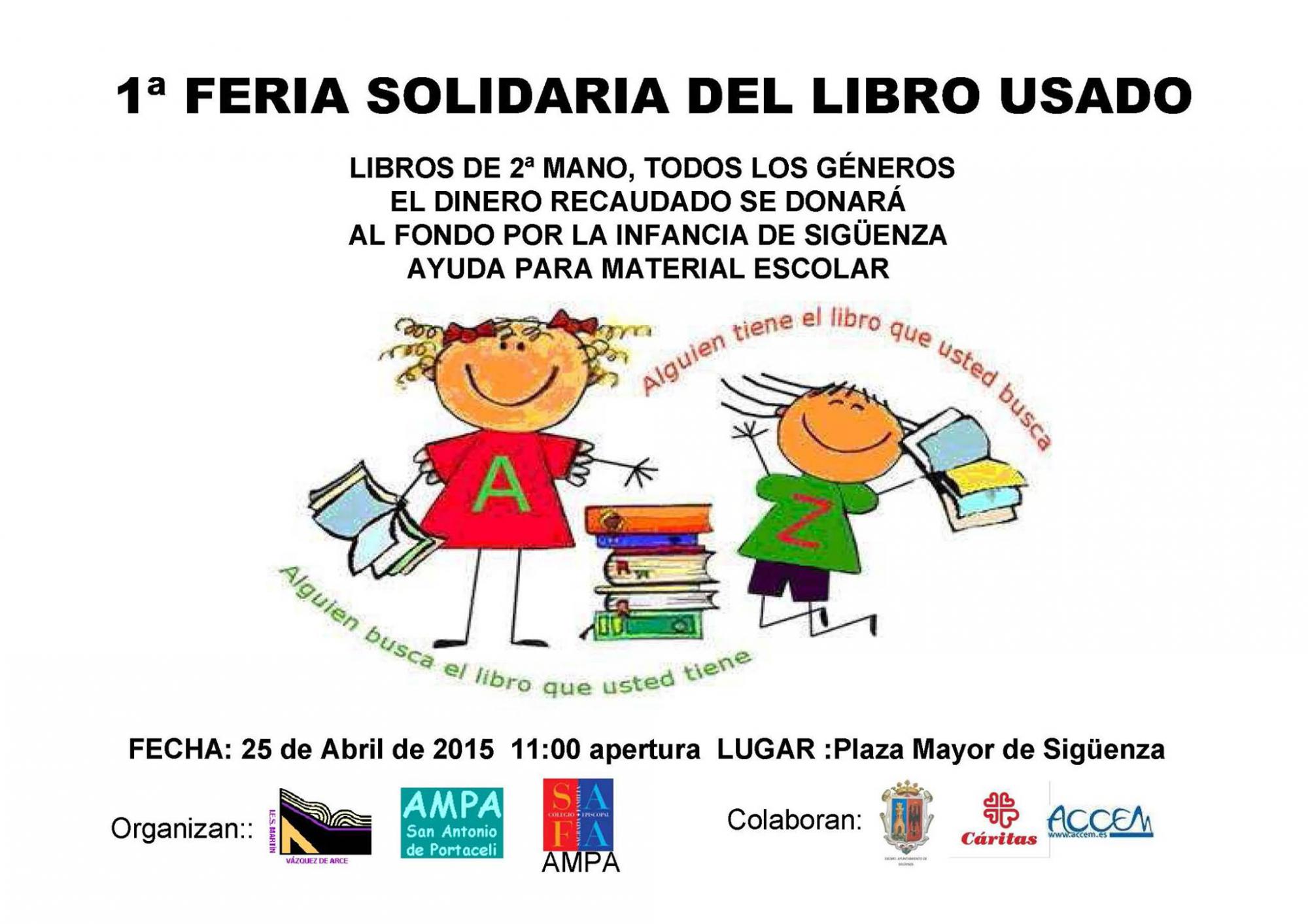 Las AMPAS de los colegios seguntinos Sagrada Familia, San Antonio de Portaceli e IES Martín Vázquez de Arce, con la colaboración del Ayuntamiento de Sigüenza, ACCEM y Cáritas, van a organizar la I Feria Solidaria del Libro Usado.