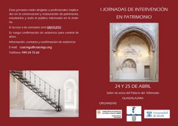 La Demarcación de Guadalajara del Colegio Oficial de Arquitectos de Castilla La Mancha (COACM), los servicios periféricos de Educación, Cultura y Deportes de la Junta de Comunidades de Castilla La Mancha y la Universidad de Alcalá de Henares han unido esfuerzo, ilusión y capacidad a la hora de organizar las primeras Jornadas sobre Intervención en Patrimonio que se van a celebrar en el Palacio del Infantado de Guadalajara, los próximos 24 y 25 de abril.