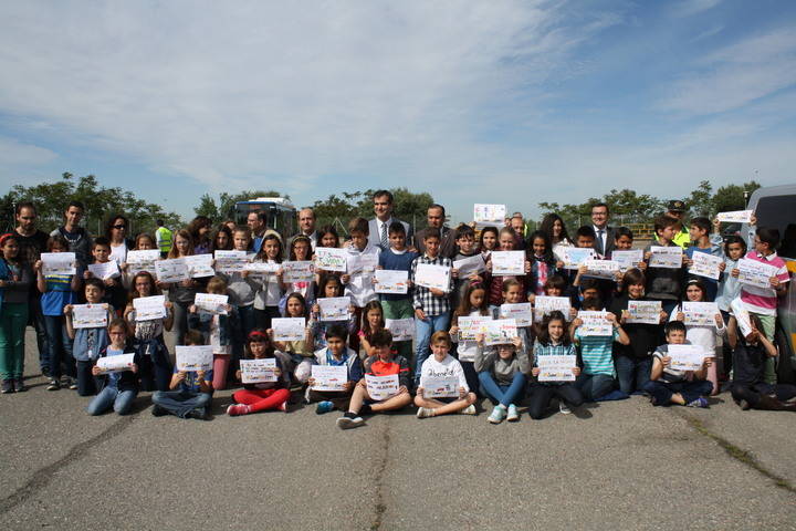 Los representantes institucionales han podido participar en la lectura de un manifiesto a favor de la seguridad vial, en castellano y en inglés, que han llevado a cabo alumnos de 5º de Primaria, que cuentan con 10 y 11 años, del colegio público Ocejón.