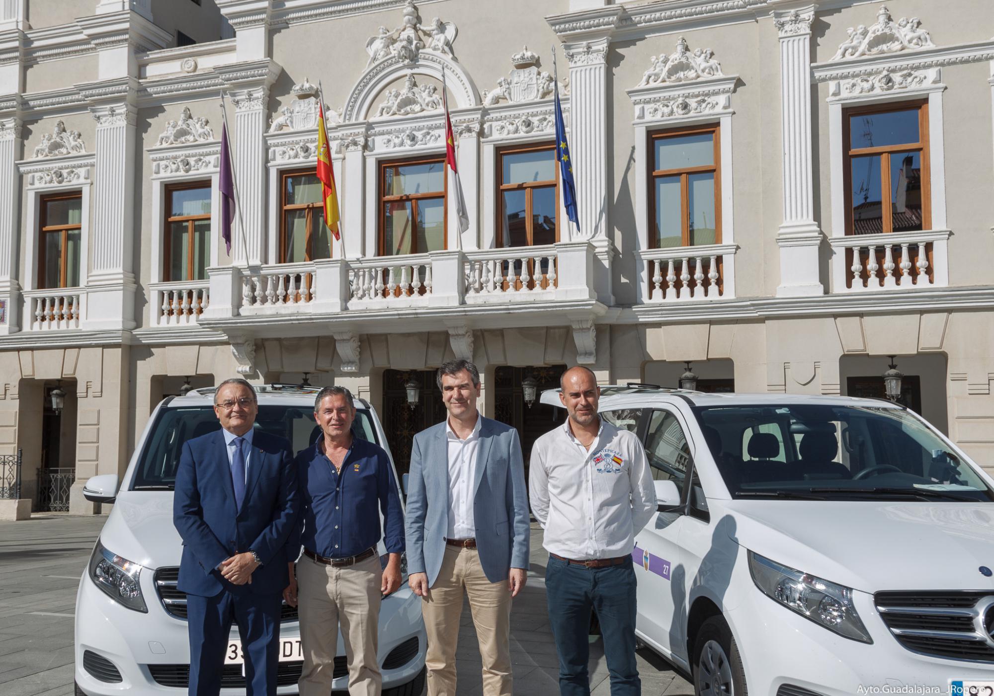 Guadalajara cuenta ya con dos taxis adaptados para personas con capacidades diferentes. Esta mañana han sido presentados por el alcalde, Antonio Román, quien ha estado acompañado por Agustín Martínez y Antonio Ochaíta, taxistas que se encargan de prestar dicho servicio.