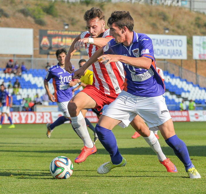 Ese susto en contra aumentó todavía más el dominio deportivista, que de ahí al descanso consiguió hilvanar momentos de buen juego e intensidad en busca del gol. De hecho, Abel Molinero no encontró rematador a su pase en el minuto 21 y, apenas unos segundos después, un defensa almeriense se interpuso en el disparo de Javi López tras una preciosa jugada combinativa de los alcarreños. Arroyo, con un lanzamiento frontal desviado, y Pérez, con un tiro que se encontró con un zaguero visitante, continuaron haciendo méritos para el gol alcarreño y, a pesar de que Iván Sánchez disparó fuera una falta frontal, ese tanto por fin llegó en el minuto 45: Abel Molinero, muy activo a lo largo del primer periodo, batió a Gianfranco con un gran lanzamiento desde el borde del área.