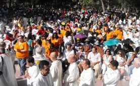 La Ceremonia Eucarística se celebró en un abarrotado Parque de la Concordia. A la conclusión de la misma, los peregrinos entonaron cánticos de sus países de origen y se distribuyeron por la ciudad. Muchos fueron a visitar los Monumentos de Guadalajara que estaban abiertos por iniciativa de la Concejalía de Turismo. A primera hora de la tarde se trasladaron al merendero del Parque de San Roque para degustar una exquisita paella.