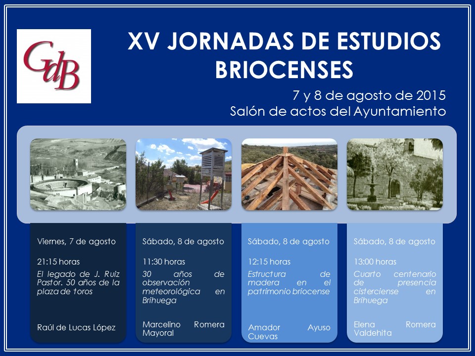Este fin de semana, viernes y sábado, vuelven, como ya es tradicional, las Jornadas de Estudios Briocenses, que este año alcanzan su décimo sexta edición. Durante estas jornadas personas comprometidas con la historia, la vida y el patrimonio de Brihuega dan a conocer diversos aspectos de la localidad en varias ponencias.