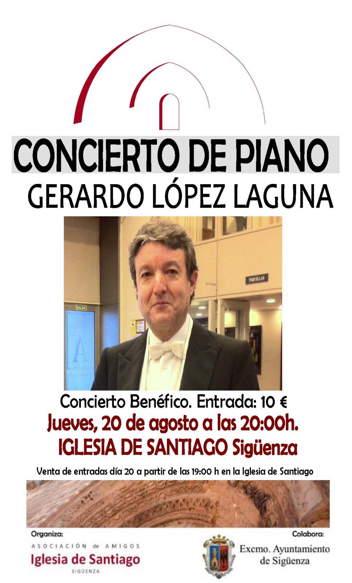 Mañana jueves, a las 20 horas de la tarde, el pianista seguntino Gerardo López Laguna va a interpretar un concierto de piano cuyos beneficios, al igual que ya hiciera el año pasado donará al el proyecto de reconstrucción de la Iglesia de Santiago para convertirla en un Centro de Interpretación del Románico provincial.