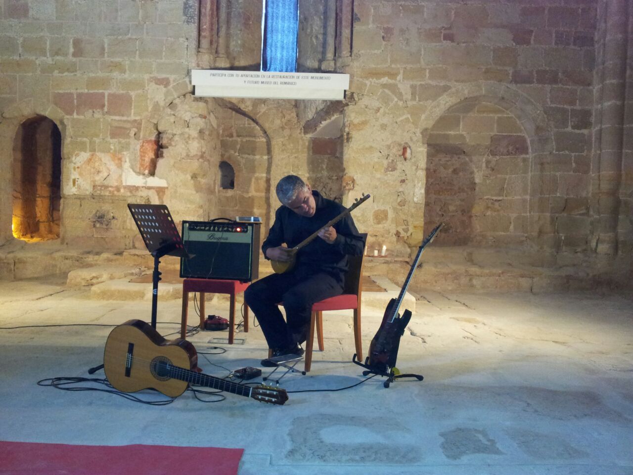 Prego interpretó música del renacimiento y del barroco, eligiendo también temas de tradición popular. Además de la guitarra, utilizó también instrumentos como el setar, con el que tocó una pieza persa llamada Isfahan. Para terminar el concierto, el músico hizo gala de su virtuosismo tocando algunas piezas con guitarra eléctrica, pero siempre buscando ese viaje al interior. “Como en mi primera experiencia, en esta también me he sentido muy a gusto en Sigüenza y en la Iglesia de Santiago, a cuyo proyecto de restauración he prestado y prestaré todo mi apoyo”, afirma el músico. Breogán Prego recibió de manos de Pilar Martinez Taboada, cronista oficial de la ciudad de Sigüenza y miembro de la junta directiva de la AAISS la distinción con la que la entidad distingue la generosidad de quienes ceden altruistamente su arte para contribuir al desarrollo del proyecto.