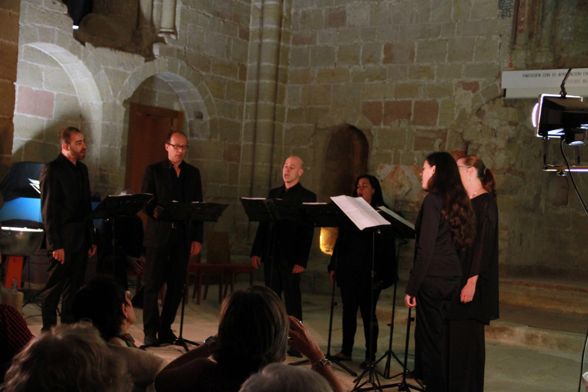 El Ensemble, grupo vocal a ocho voces, actuaba por tercer año consecutivo en la Iglesia de Santiago interpretando siempre repertorios variados en el marco de su especialidad. En este caso, el Ensemble se centró en la música sacra de entre los siglos XVI y XXI, a la que además, Ruíz añadía explicaciones concretas que ayudaron al público, que se acercó en buen número a la Iglesia, a descubrir la música también desde el punto de vista musicológico.