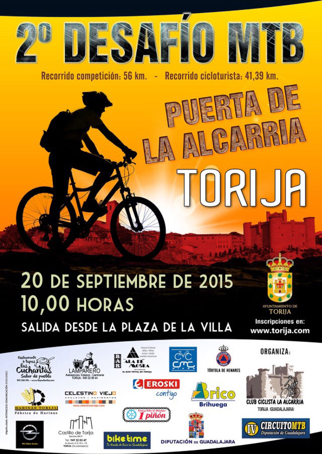 El próximo domingo, 20 de septiembre, a partir de las 10:00 horas se celebrará en Torija el II Desafío MTB Puerta de la Alcarria, undécima prueba del Circuito Diputación de Guadalajara.