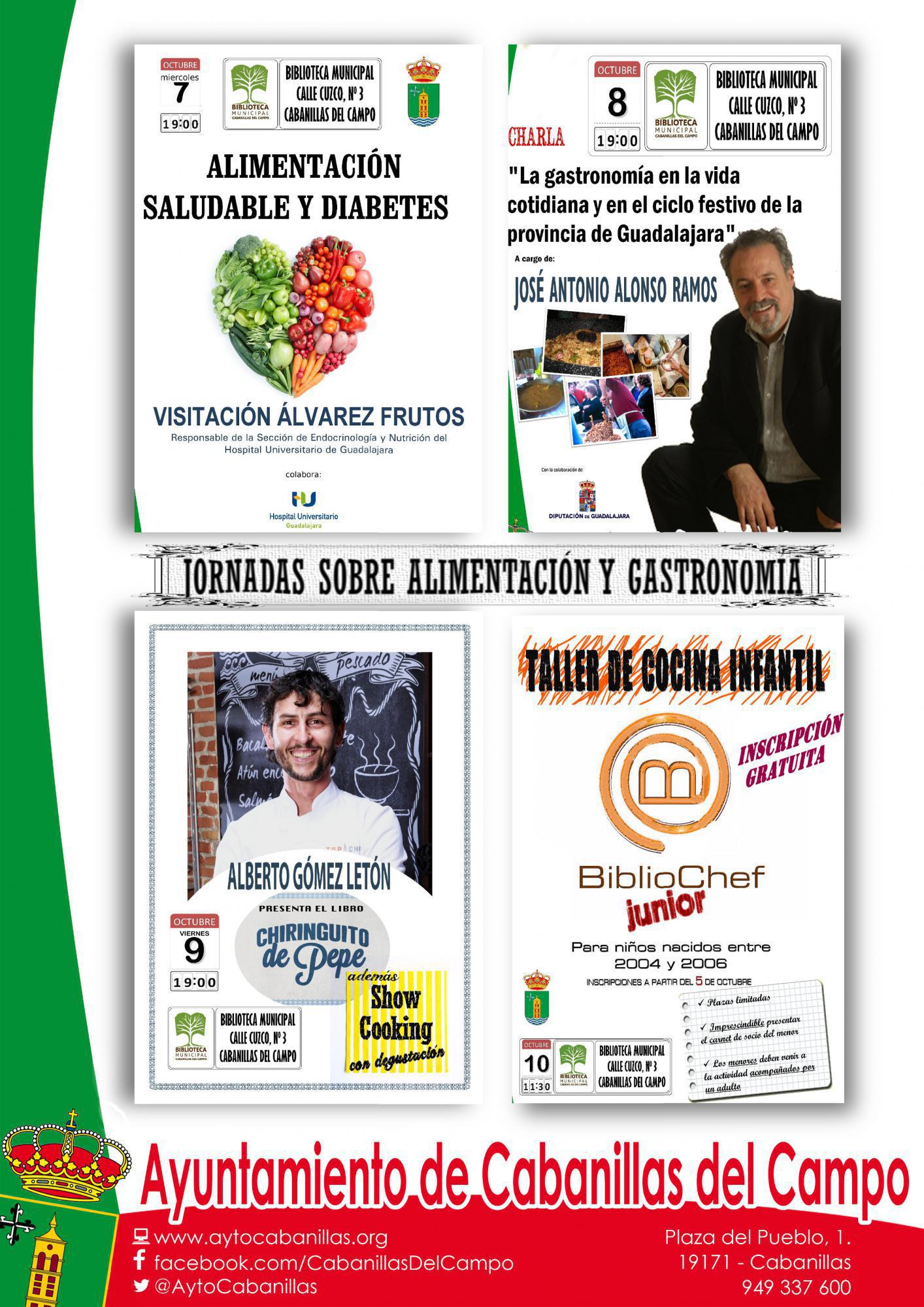 Fomentar hábitos saludables a la hora de comer, difundir la gastronomía de calidad, dar a conocer aspectos de la historia gastronómica provincial, e implicar a los niños en el mundo de la alimentación, son algunos de los objetivos con los que nacen las “Jornadas de Alimentación y Gastronomía de Cabanillas”. Se una iniciativa de la Biblioteca Municipal de la localidad, que se desarrollará desde el 7 al 10 de octubre, y que cuenta con la colaboración del Hospital Universitario de Guadalajara, y de la Diputación Provincial.